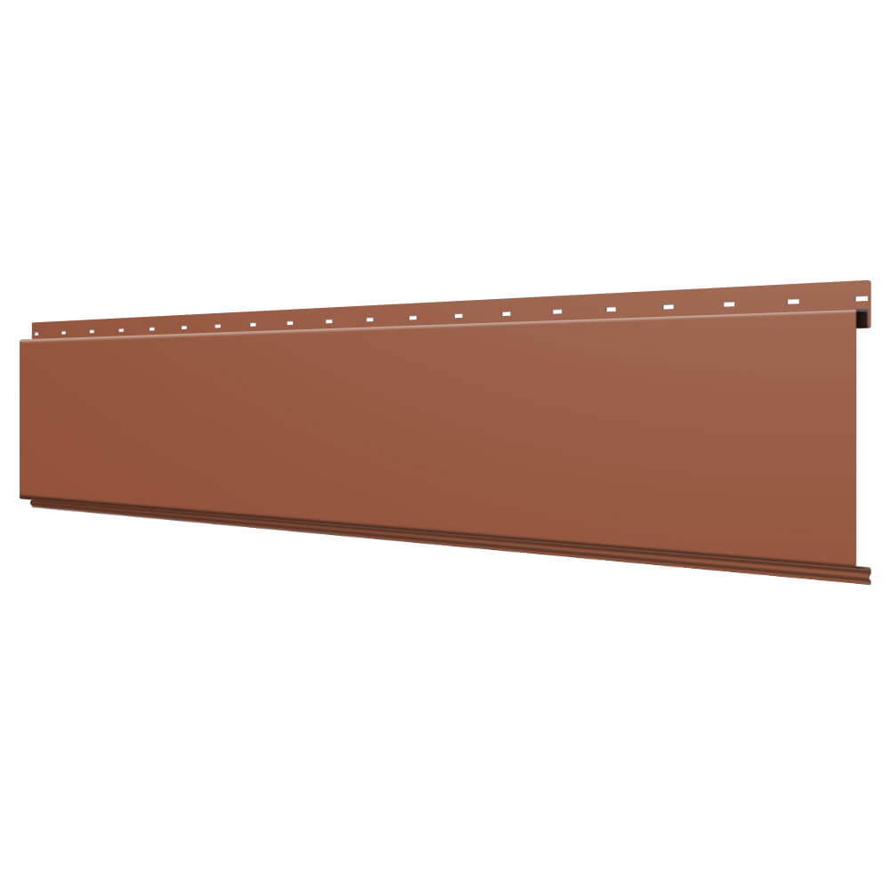 Линеарная потолочно-стеновая панель ГЛАДКАЯ цвет RAL8004 Терракотовый применяется в качестве софитов для подшивы крыши, наружной и внутренней отделки потолков, стен, фронтонов фасада дома в Актау.