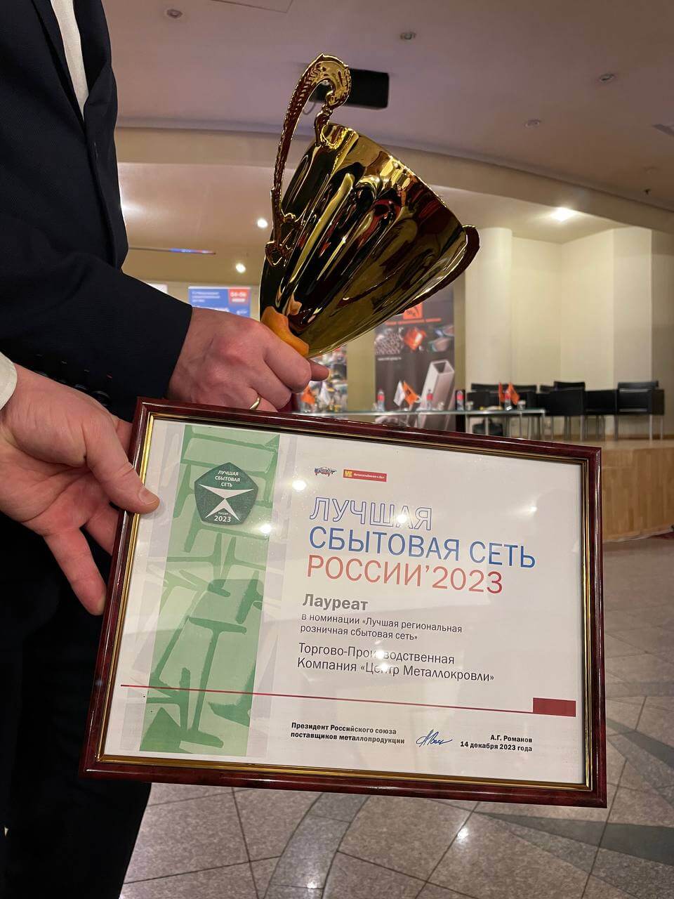 По окончании конференции состоялось награждение компаний-победителей конкурсов «Лучшая металлобаза России-2023», «Лучший сервисный металлоцентр России-2023» и «Лучшая сбытовая сеть России-2023». Эти конкурсы ежегодно проводит Российский союз поставщиков металлопродукции для того, чтобы выявлять и отмечать опыт успешного развития на рынке металлов.