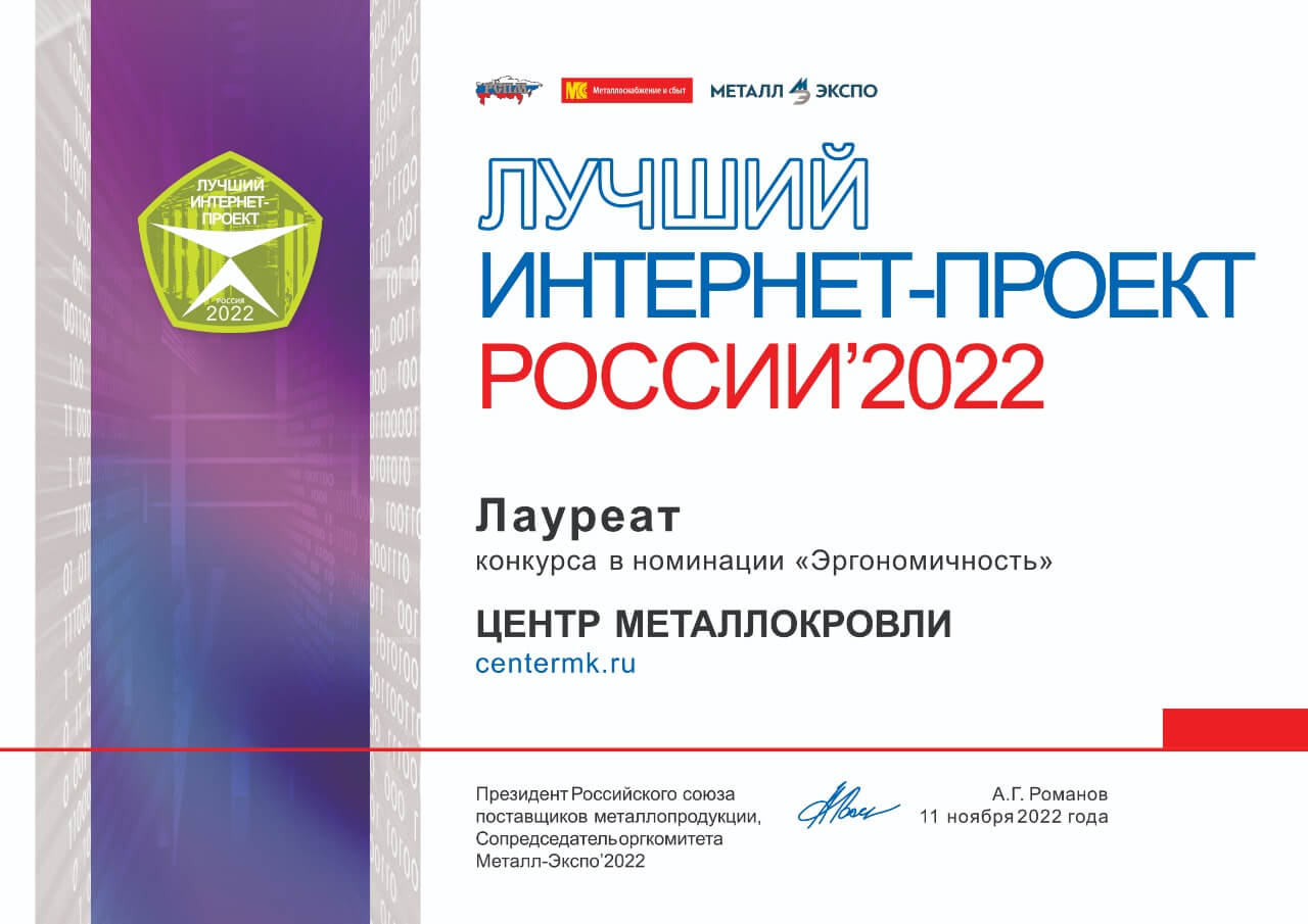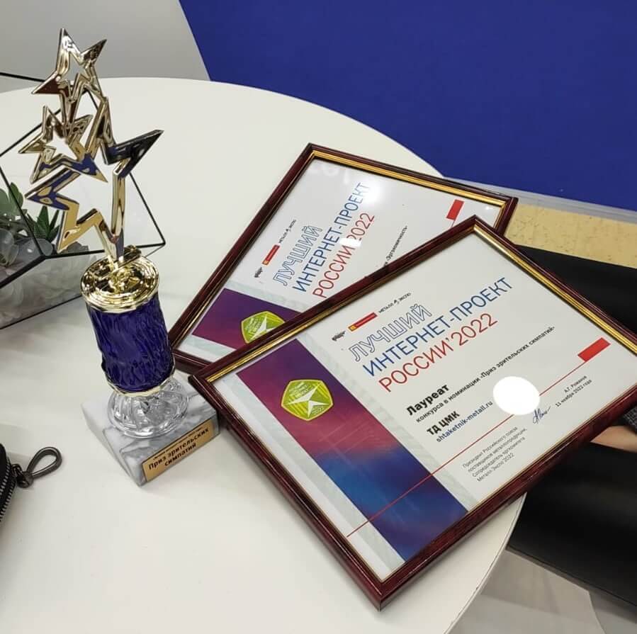 Дипломы конкурса «Лучший интернет-проект 2022» на выставке «Металл-Экспо 2022»